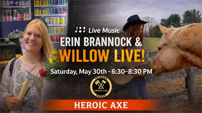 Get ready for an incredible night at Heroic Axe! Erin Brannock and Willow are taking the stage with powerful vocals and songs you know and love — featuring favorites from Fleetwood Mac, Adele, Tracy Chapman, Taylor Swift, and Morgan Wallen. From soulful ballads to modern singalongs, it’s the perfect soundtrack for a Saturday night.